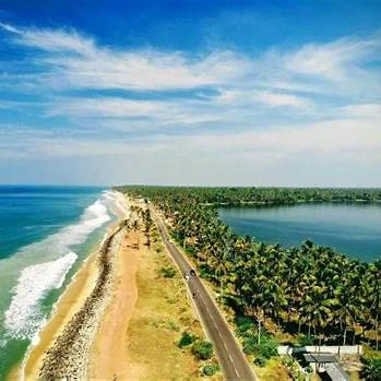 Kappil Beach is a serene coastal destination located near Varkala in the Thiruvananthapuram district of Kerala. It is known for its pristine golden sands, calm waters, and scenic surroundings, making it a quieter alternative to the busier Varkala Beach. The beach stretches along the backwaters where the Kappil Lake meets the Arabian Sea, creating a picturesque landscape of lagoons, coconut palms, and tranquil waters.
